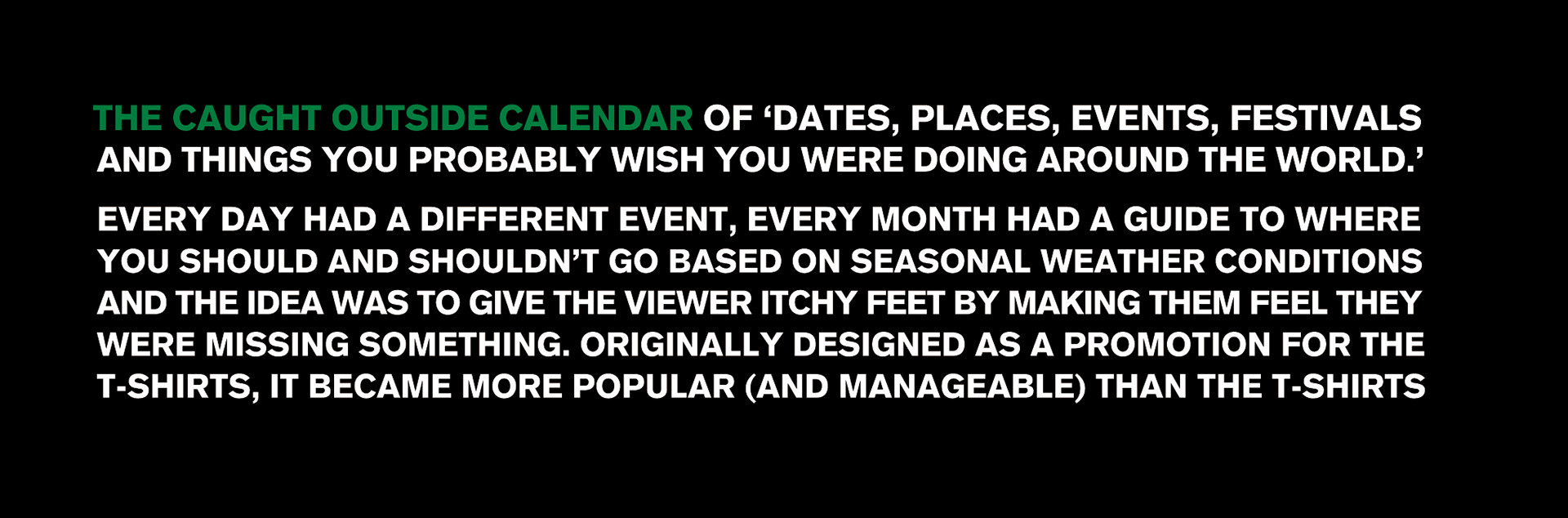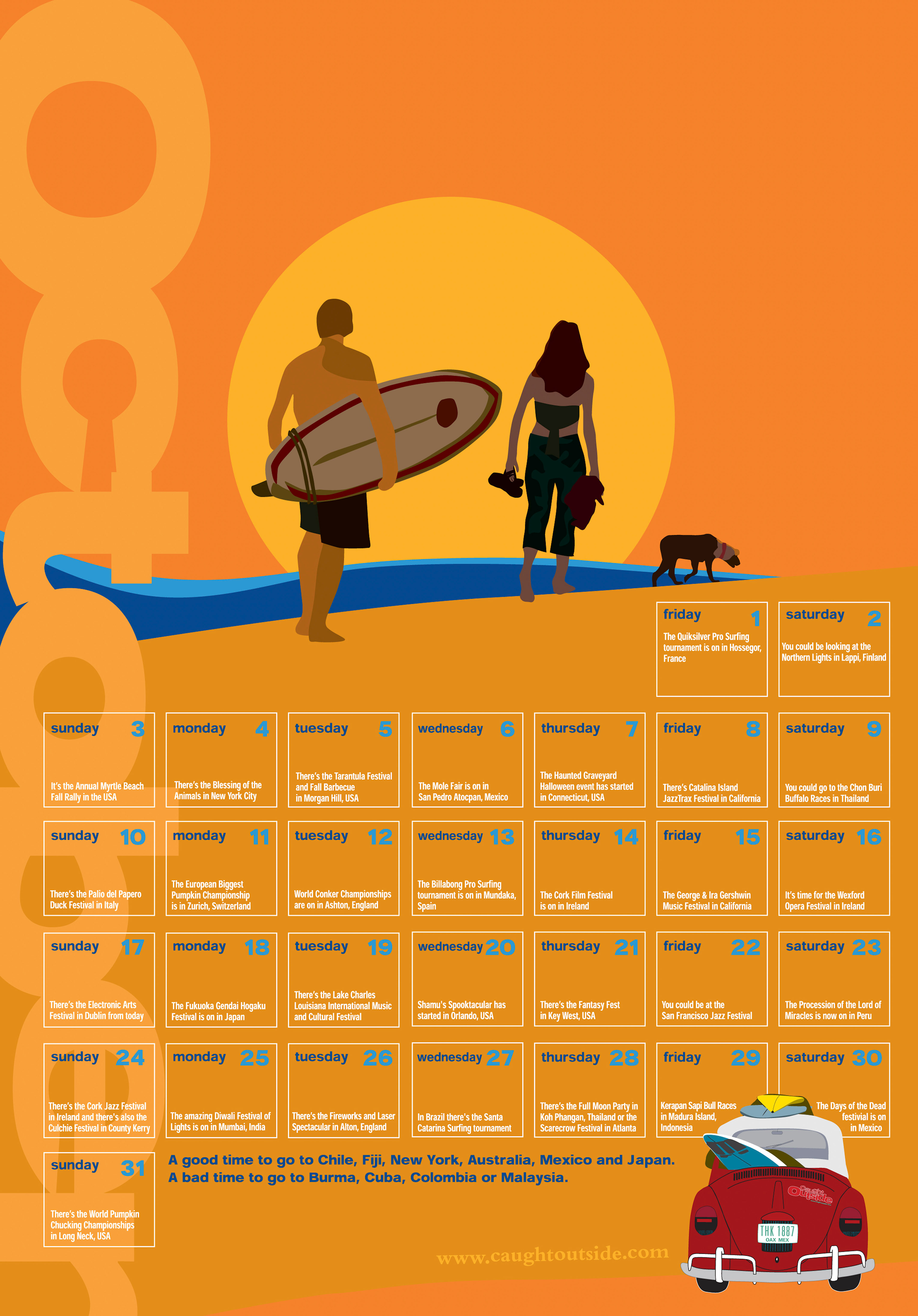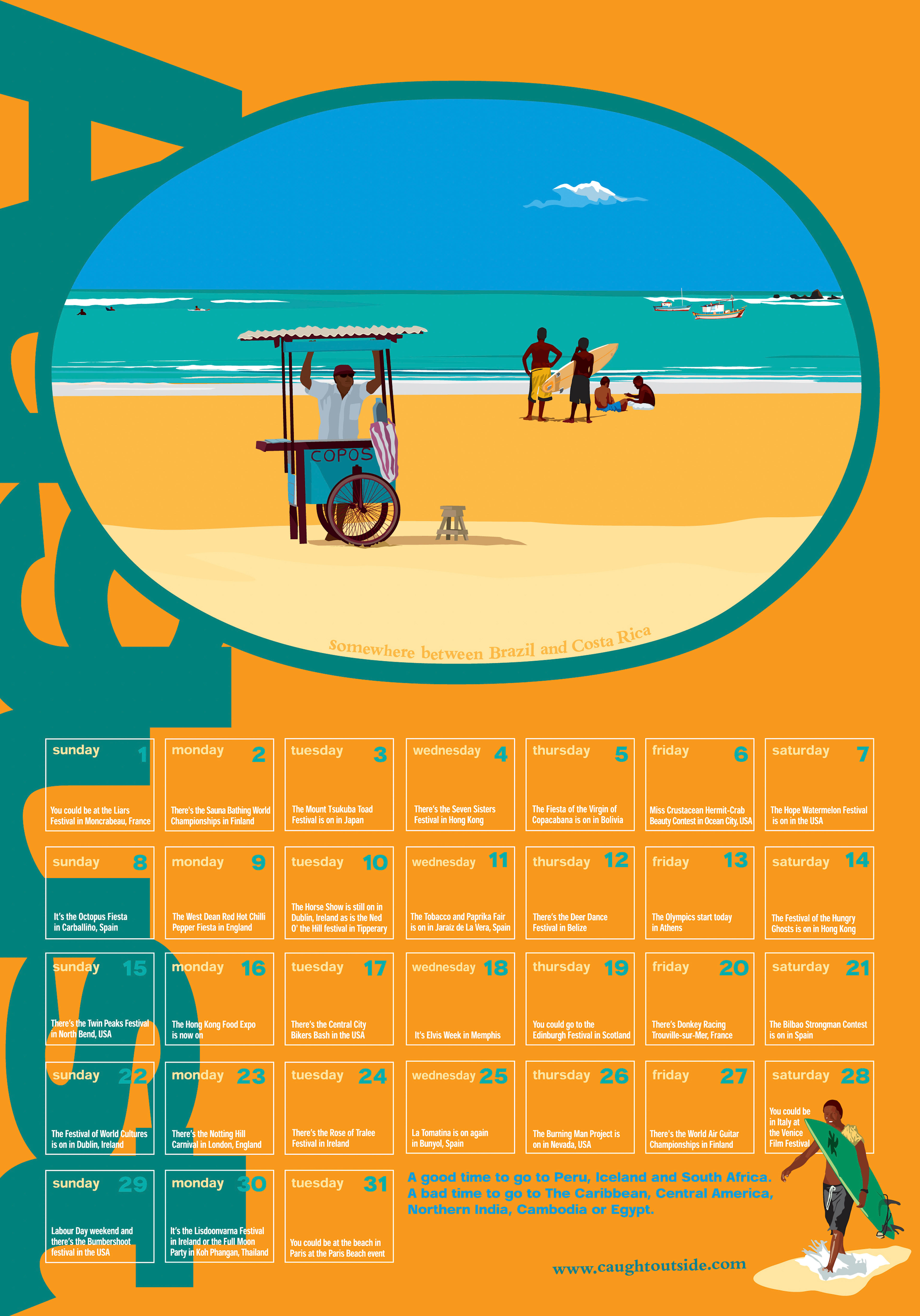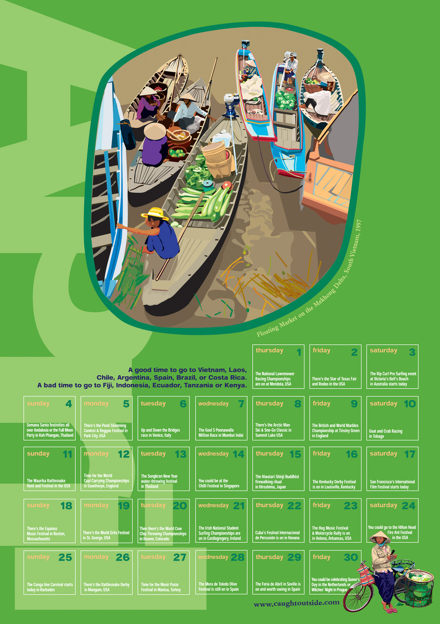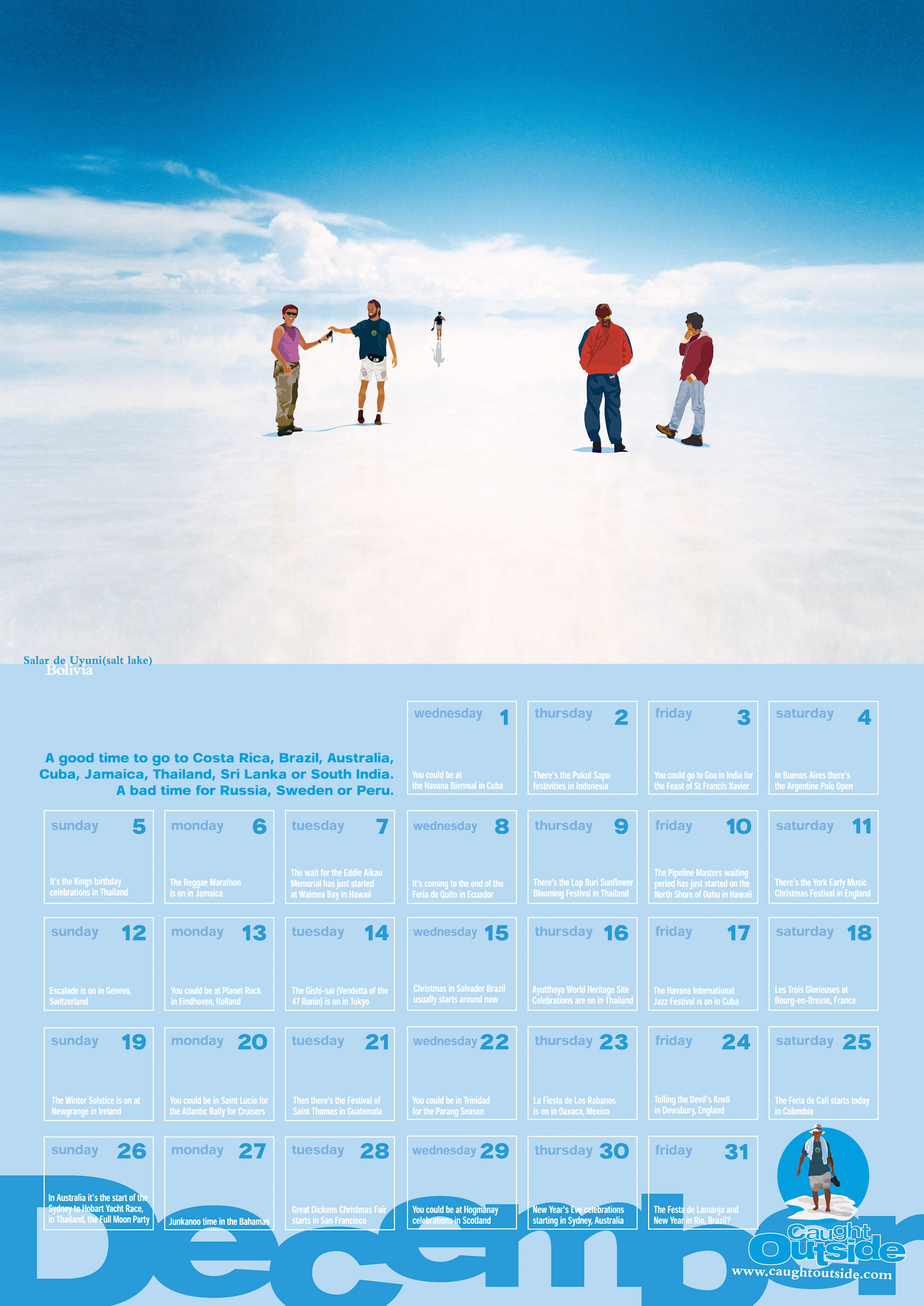 The Caught Outside calendar of dates, places, events, festivals and things you probably wish you were doing around the world.