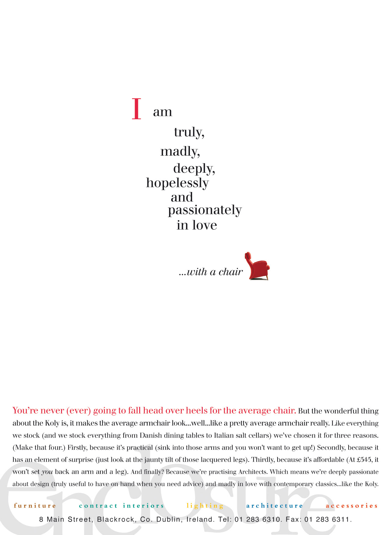 Design and promotional work for Enclosure interior design shop.
