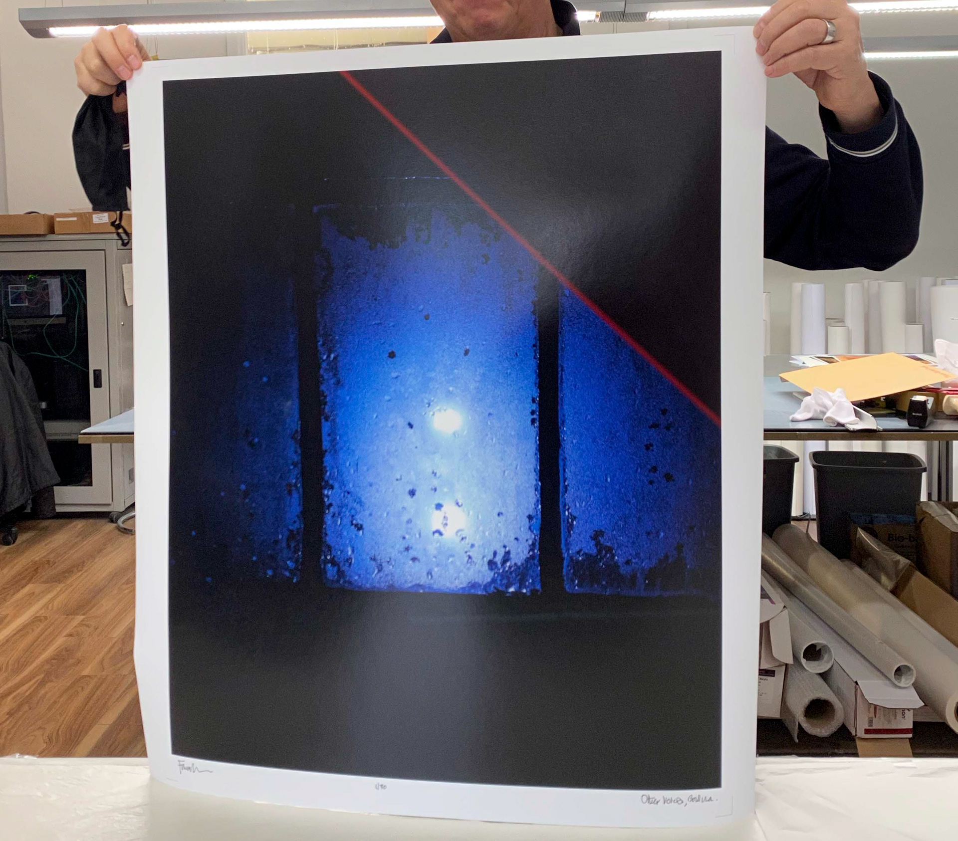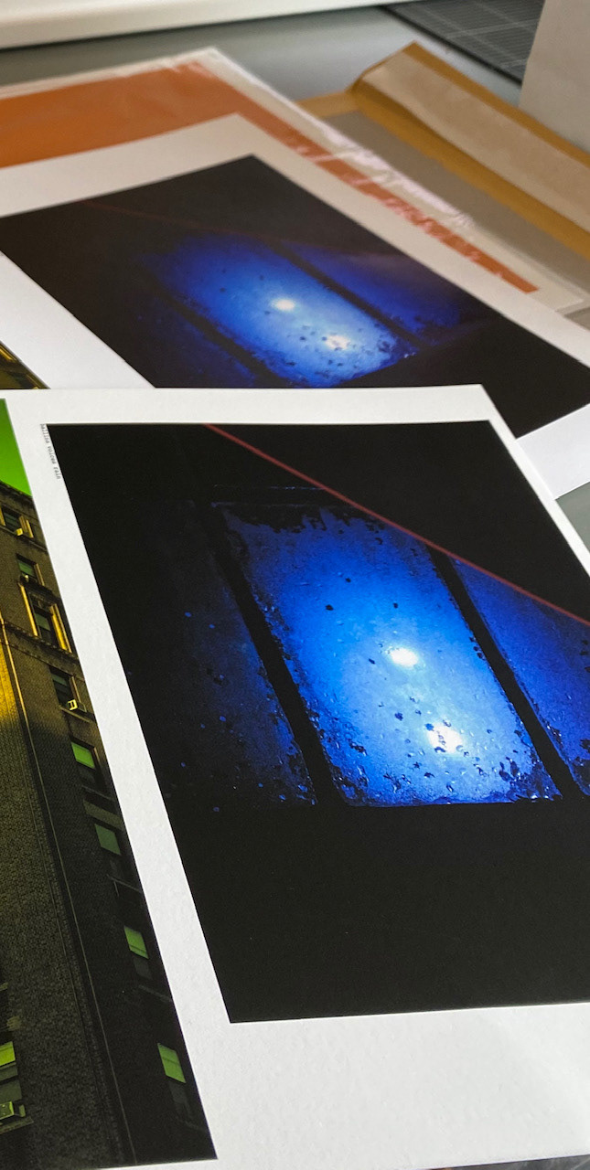 Testing paper stocks as the large areas of black are not as suited to the usual Hahnemühle fine art fibre based matt paper so instead I'm using a silk paper stock which retains the strong contrast.